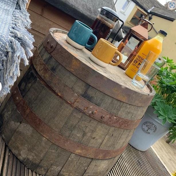 FLAT TOP Oak WHISKEY Barrel - Ideal Garden table, Coffee table , Side stand, Patio