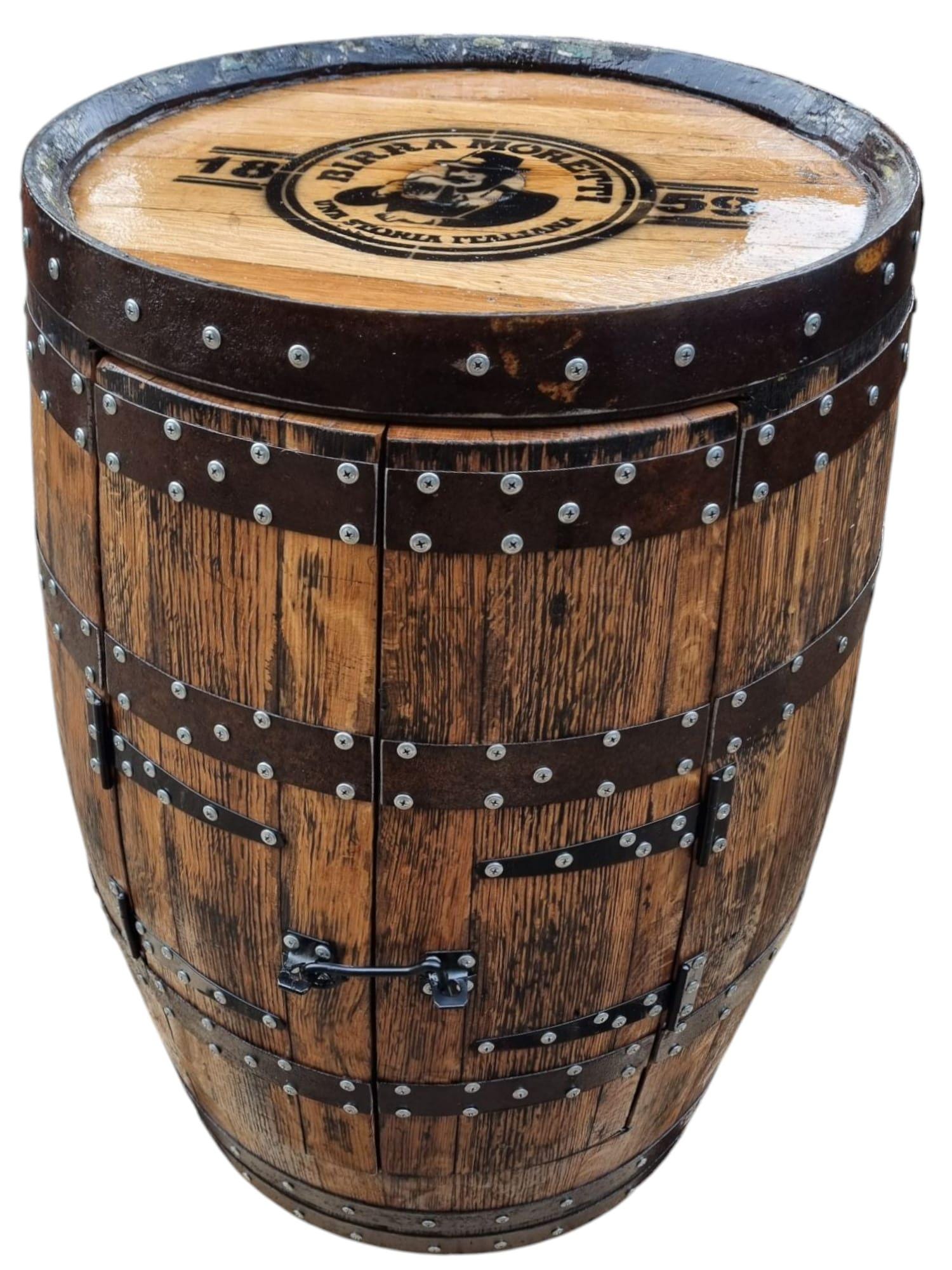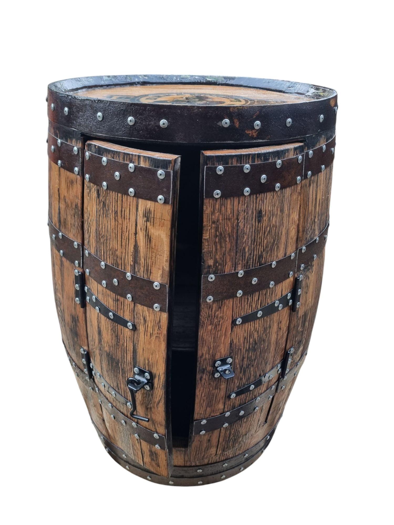 The recycled solid oak whisky barrel drinks cabinet is handmade from recycled Scottish whisky casks that have been sourced from the finest and oldest distilleries in Scotland.