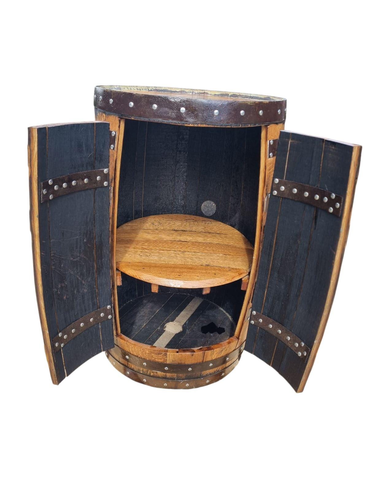 The recycled solid oak whisky barrel drinks cabinet is handmade from recycled Scottish whisky casks that have been sourced from the finest and oldest distilleries in Scotland.