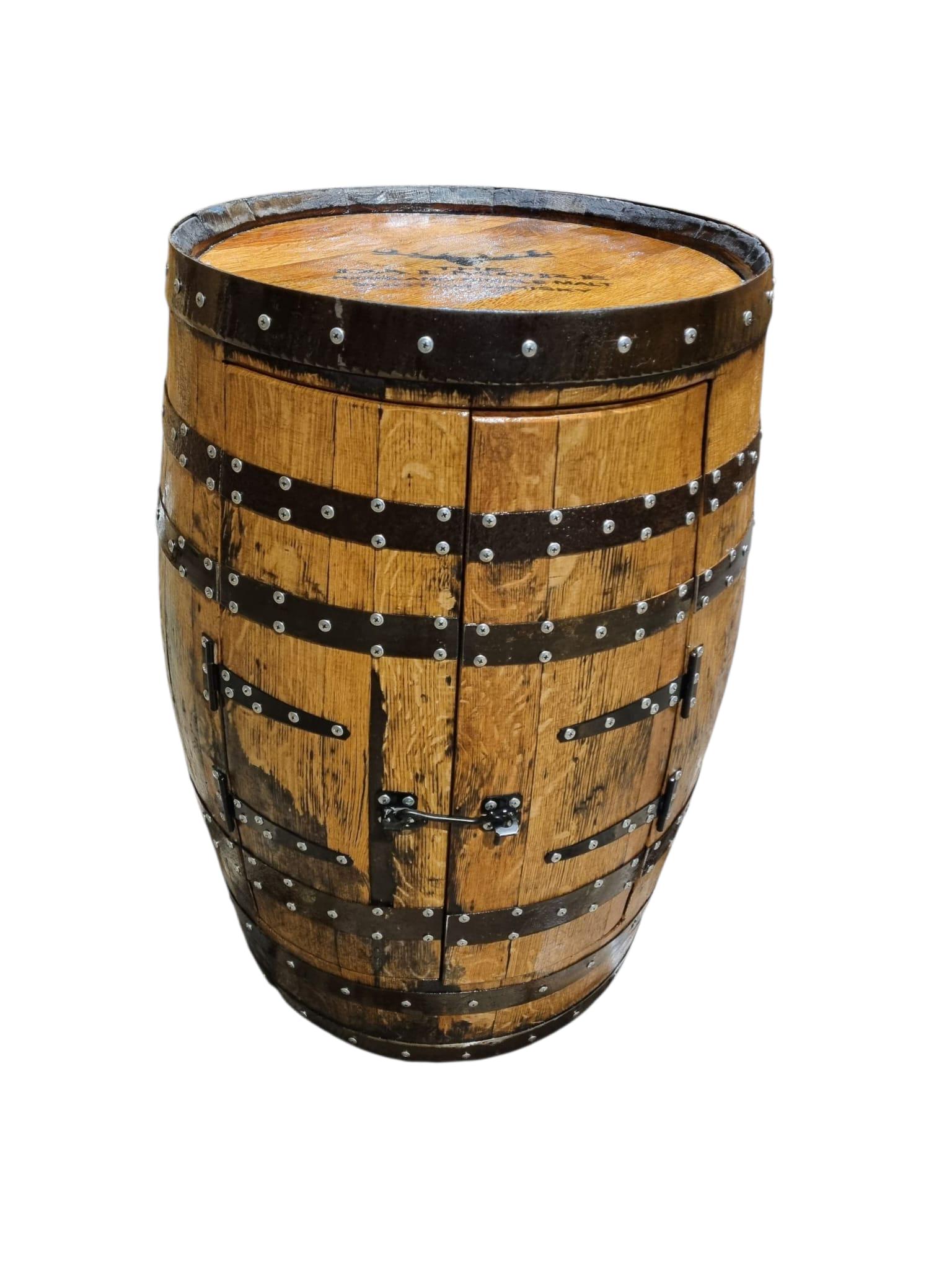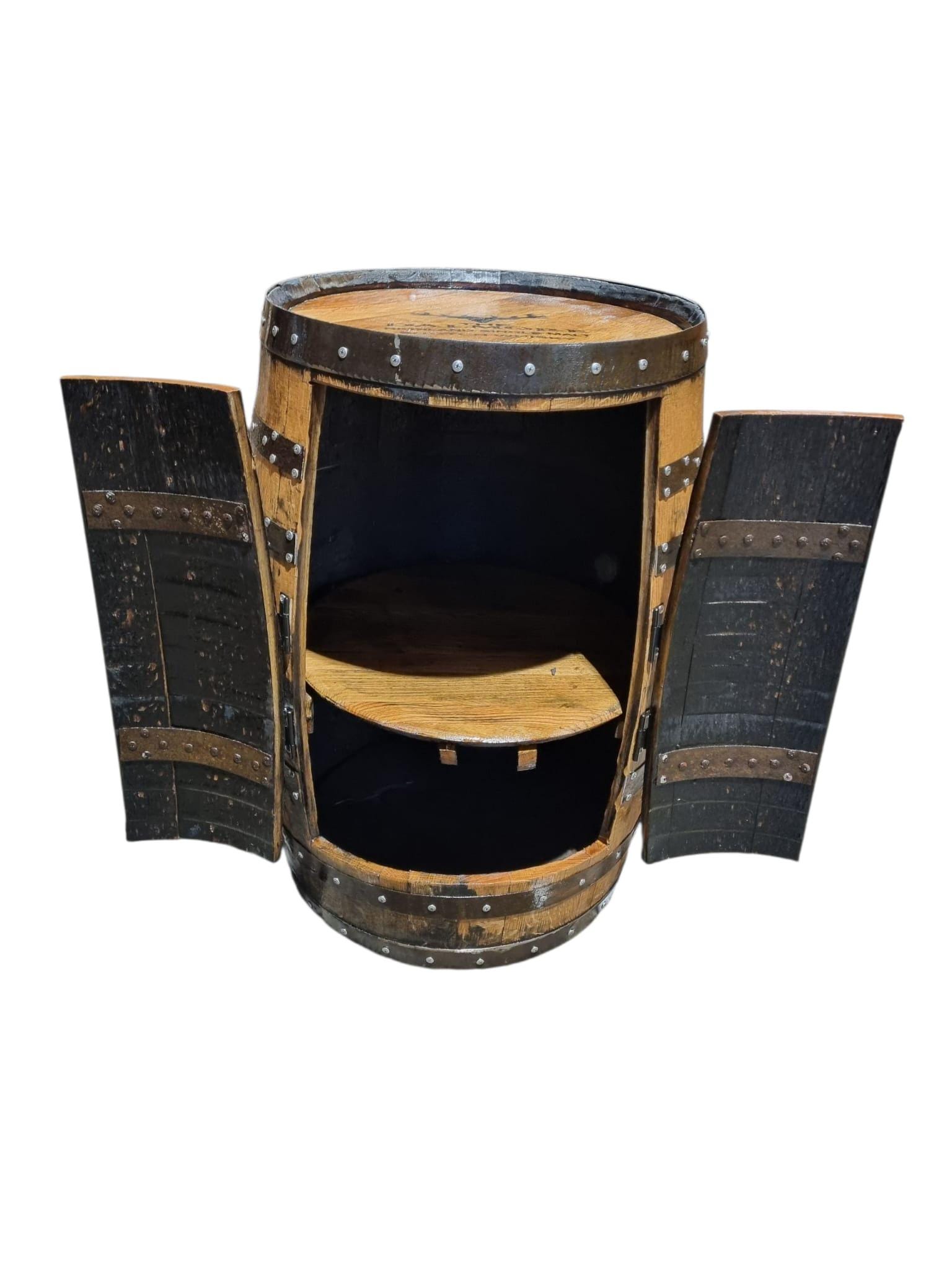 The recycled solid oak whisky barrel drinks cabinet is handmade from recycled Scottish whisky casks that have been sourced from the finest and oldest distilleries in Scotland.