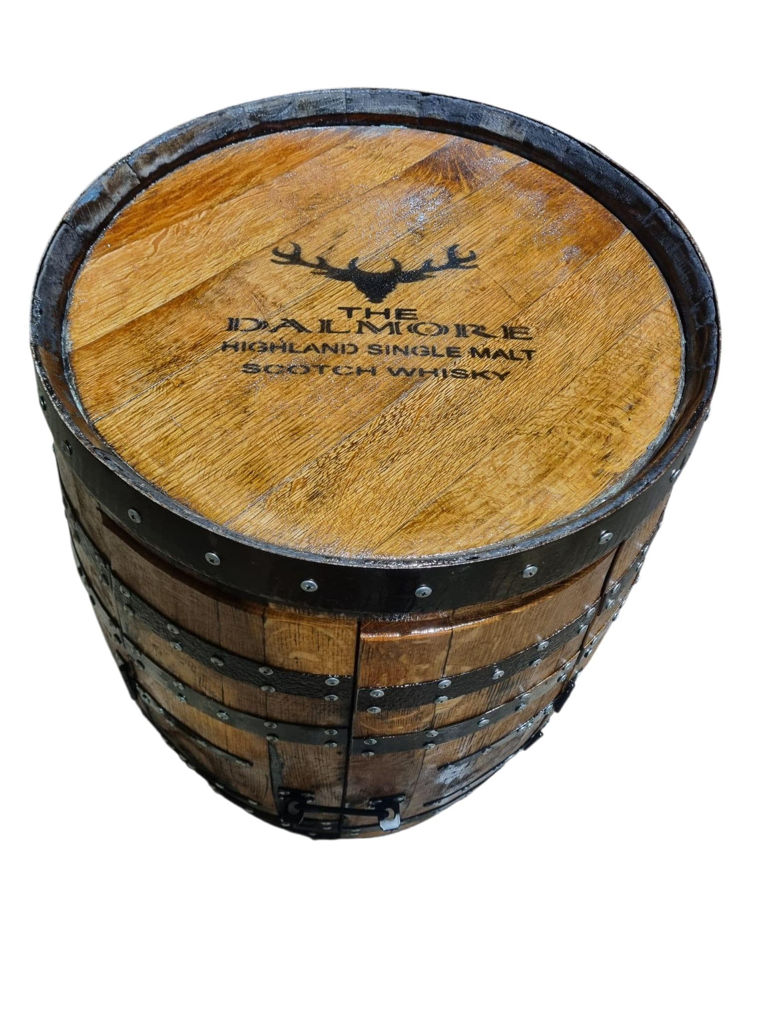 THE DALMORE whisky Branded - Rustic Bourbon Barrel Cask Handcrafted Drinks Cabinet / Home Bar / Man Cave