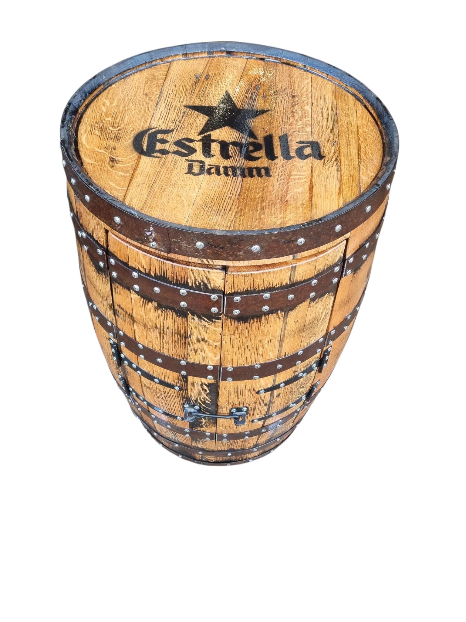 ESTRELLA DAMM - Rustic Bourbon Barrel Cask Handcrafted Drinks Cabinet / Home Bar / Man Cave
