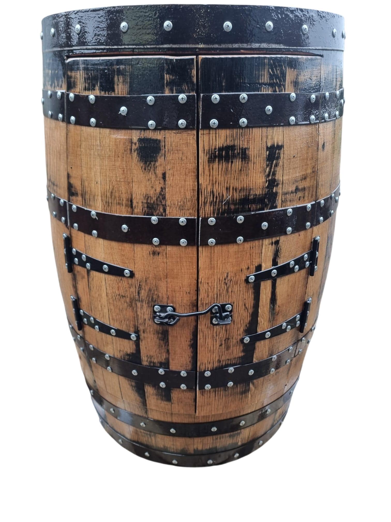 The recycled solid oak whisky barrel drinks cabinet is handmade from recycled Scottish whisky casks that have been sourced from the finest and oldest distilleries in Scotland.
