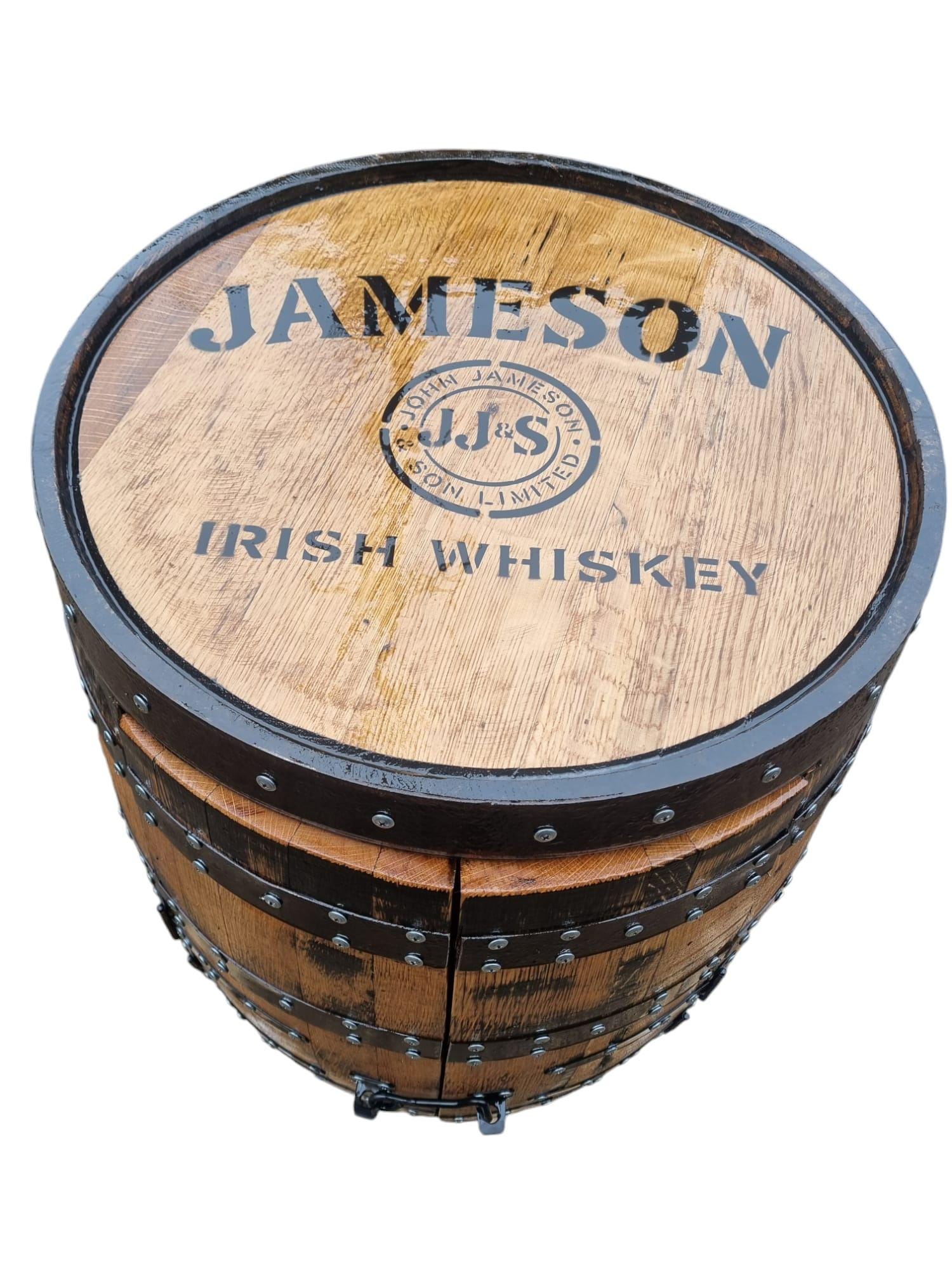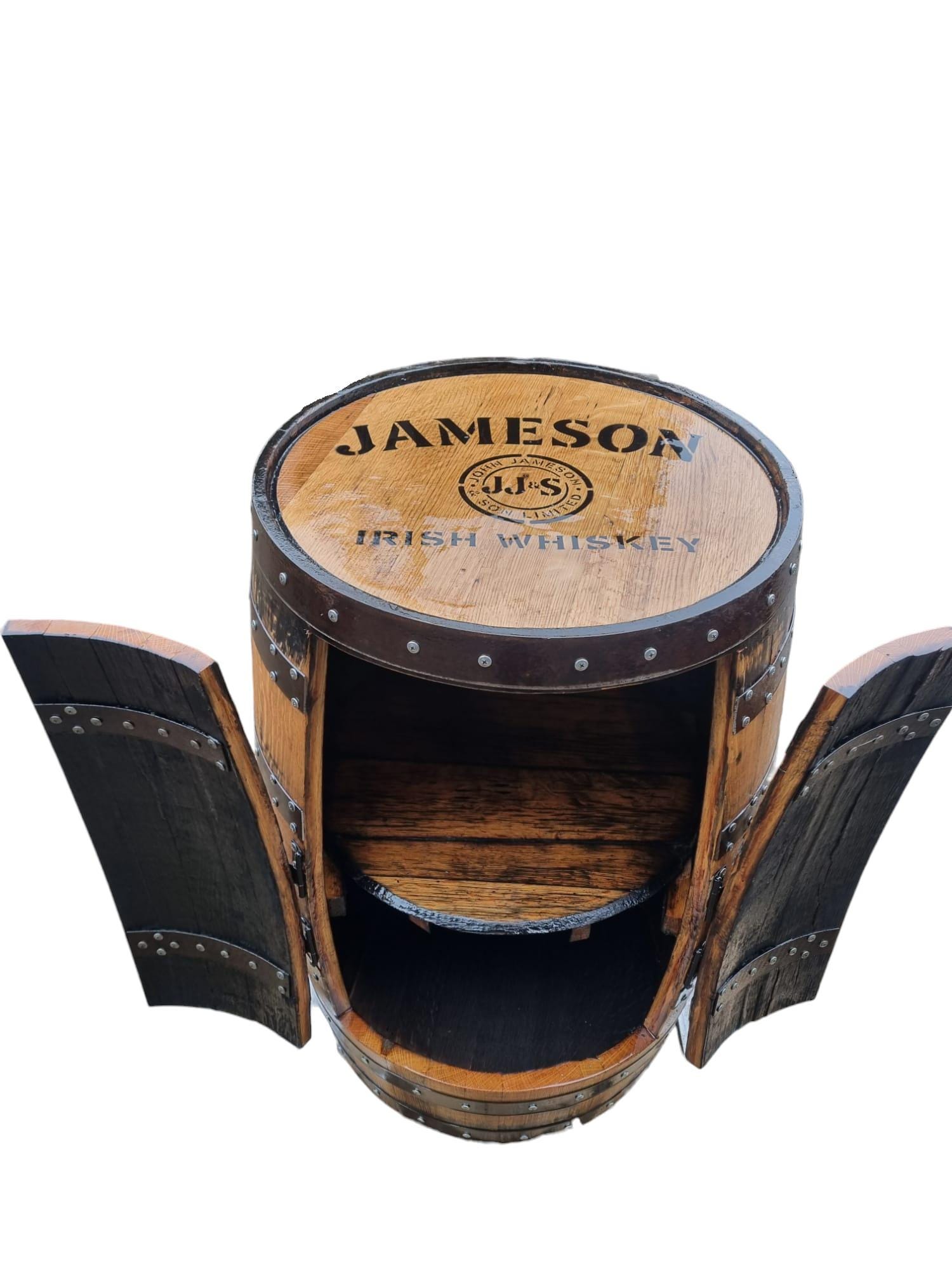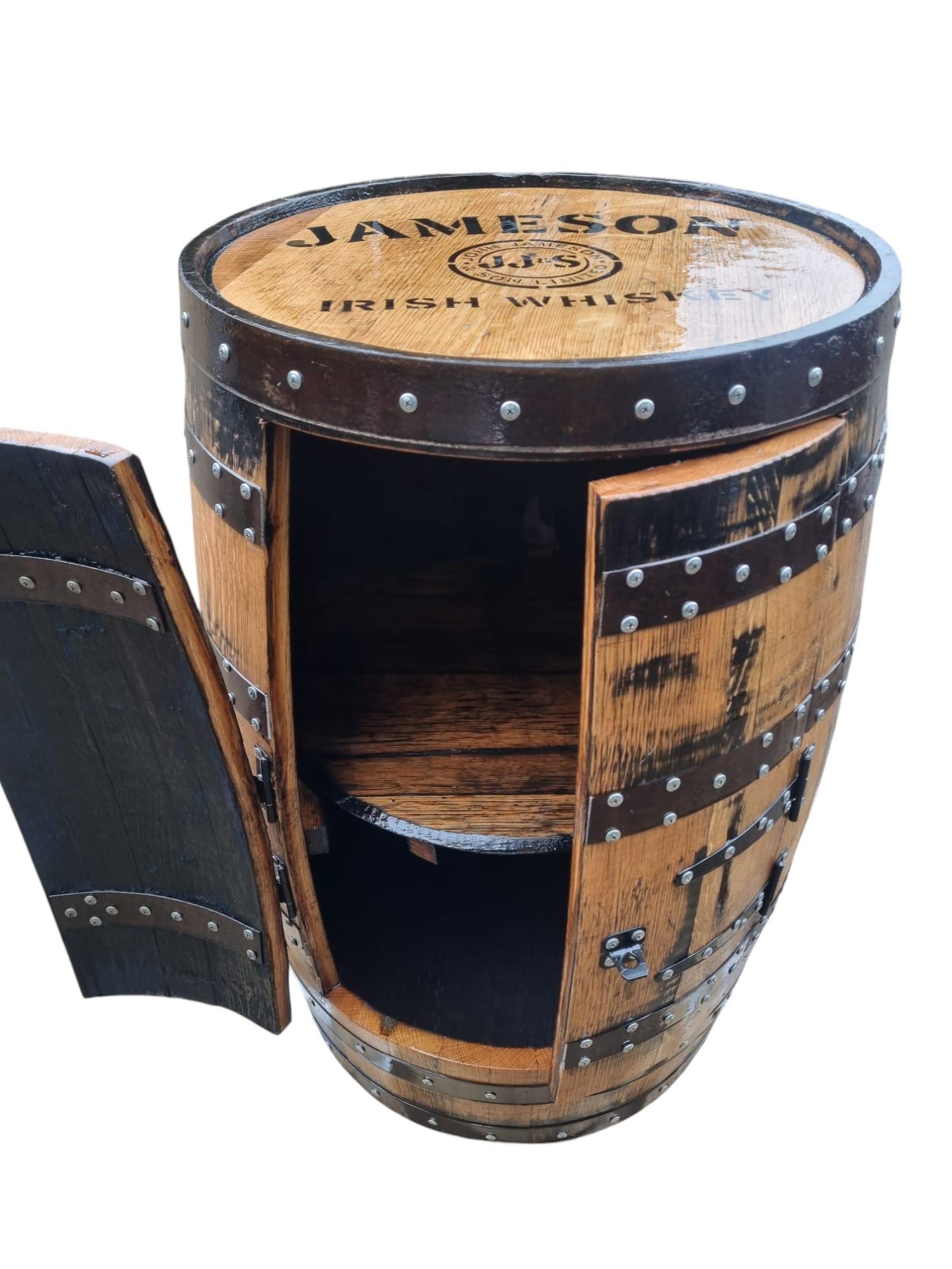 JAMESON Branded - Rustic Bourbon Barrel Cask Handcrafted Drinks Cabinet / Home Bar / Man Cave