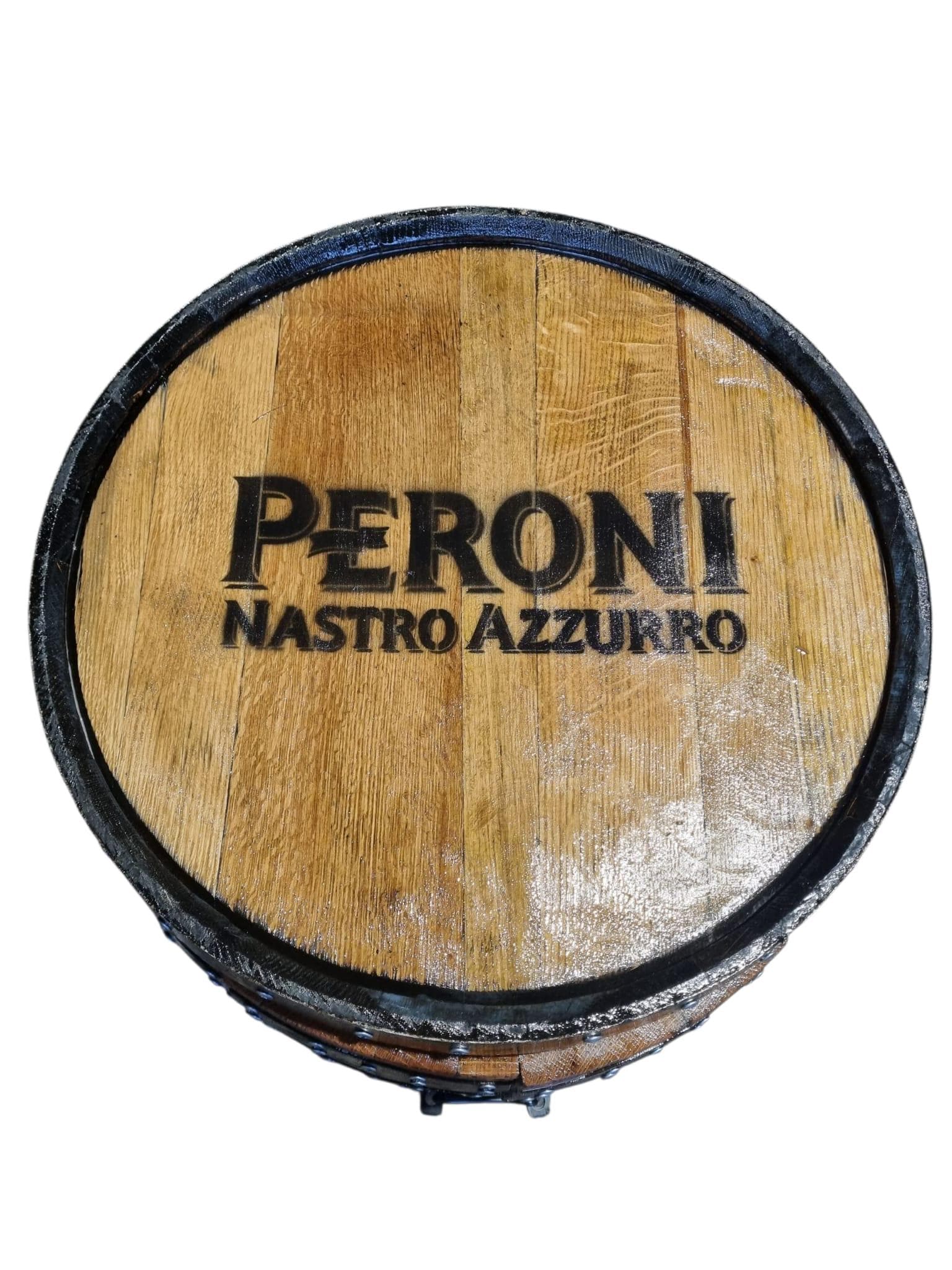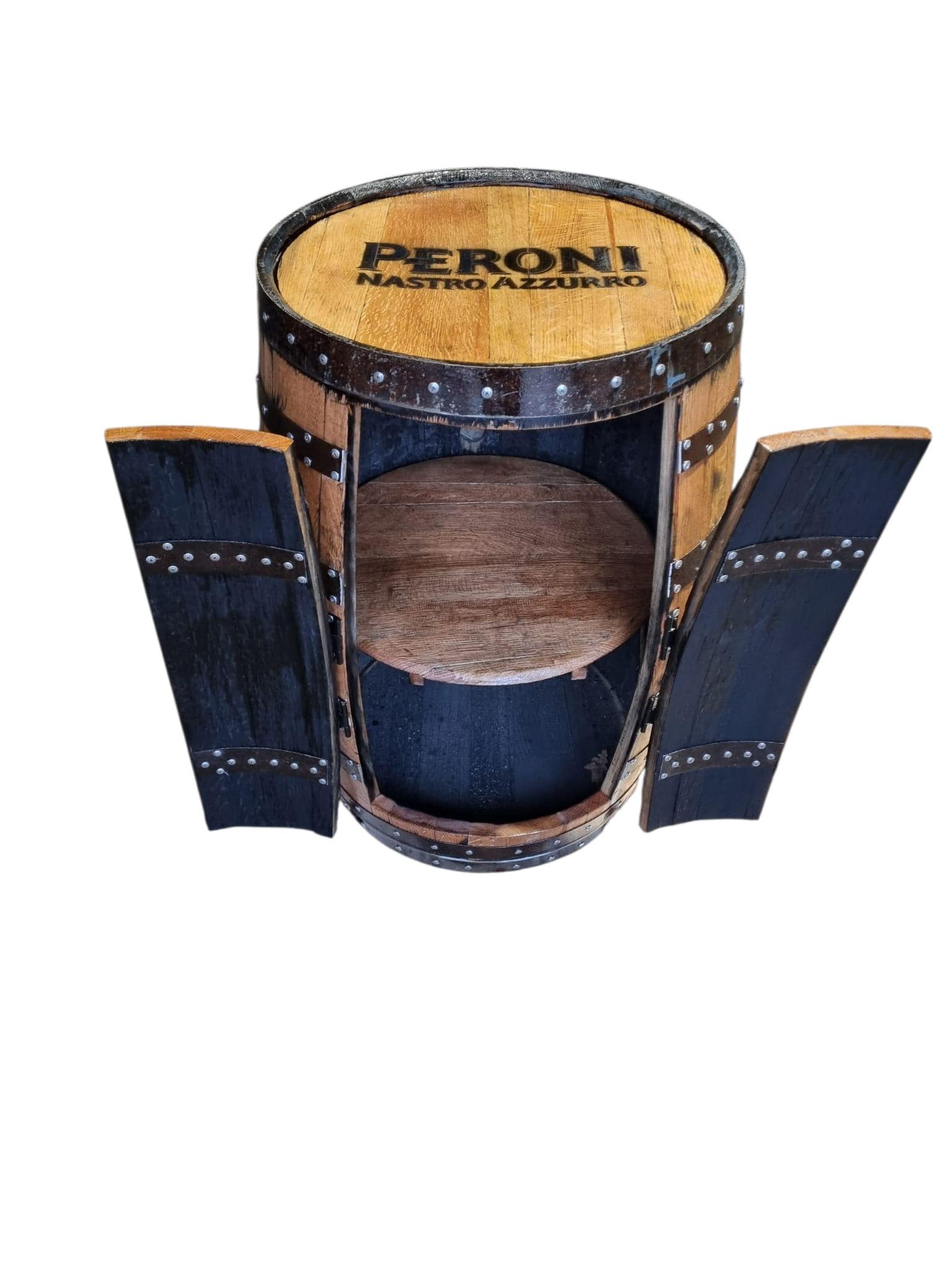 PERONI NASTO AZZURRO Branded - Rustic Bourbon Barrel Cask Handcrafted Drinks Cabinet / Home Bar / Man Cave