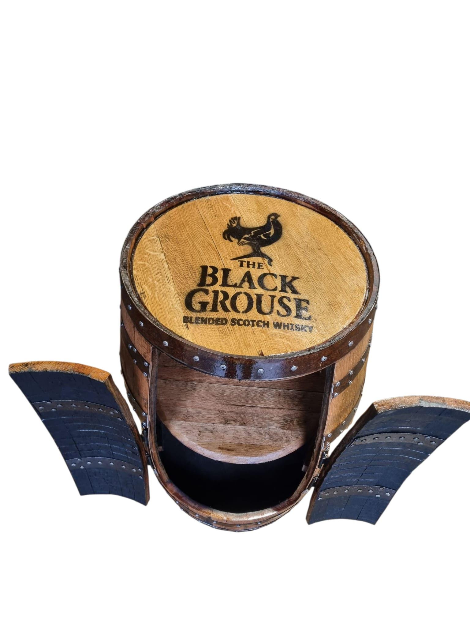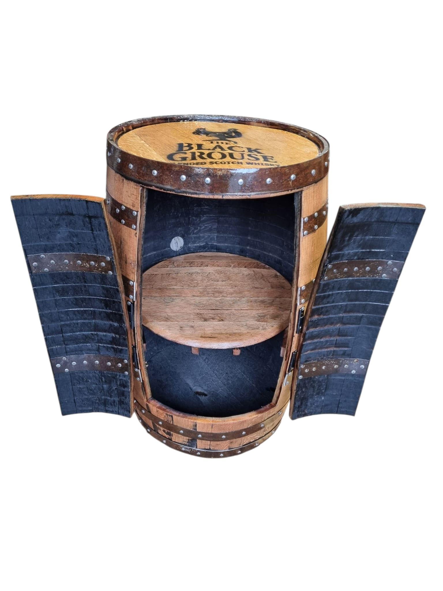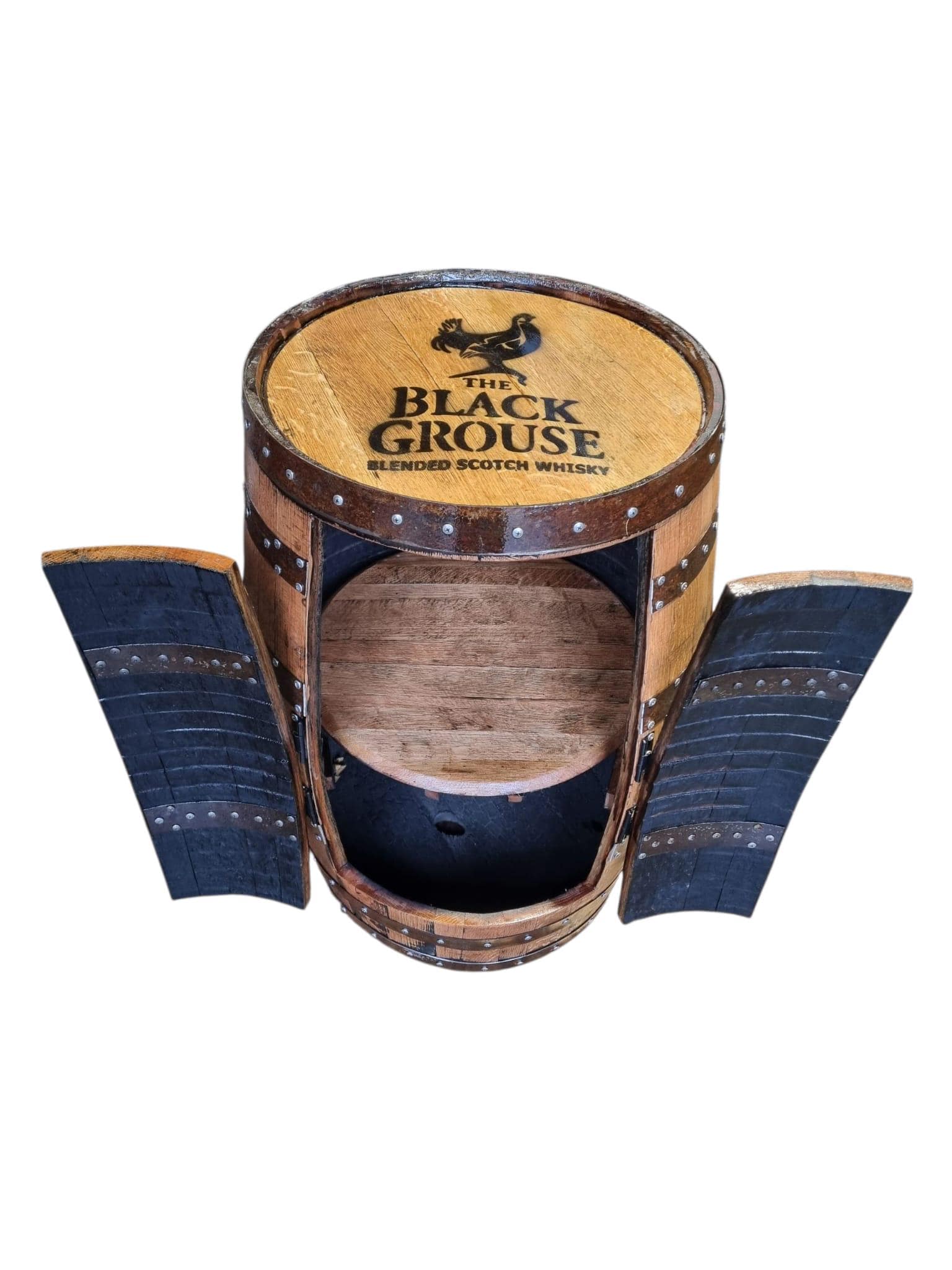 THE BLACK GROUSE Branded - Rustic Bourbon Barrel Cask Handcrafted Drinks Cabinet / Home Bar / Man Cave