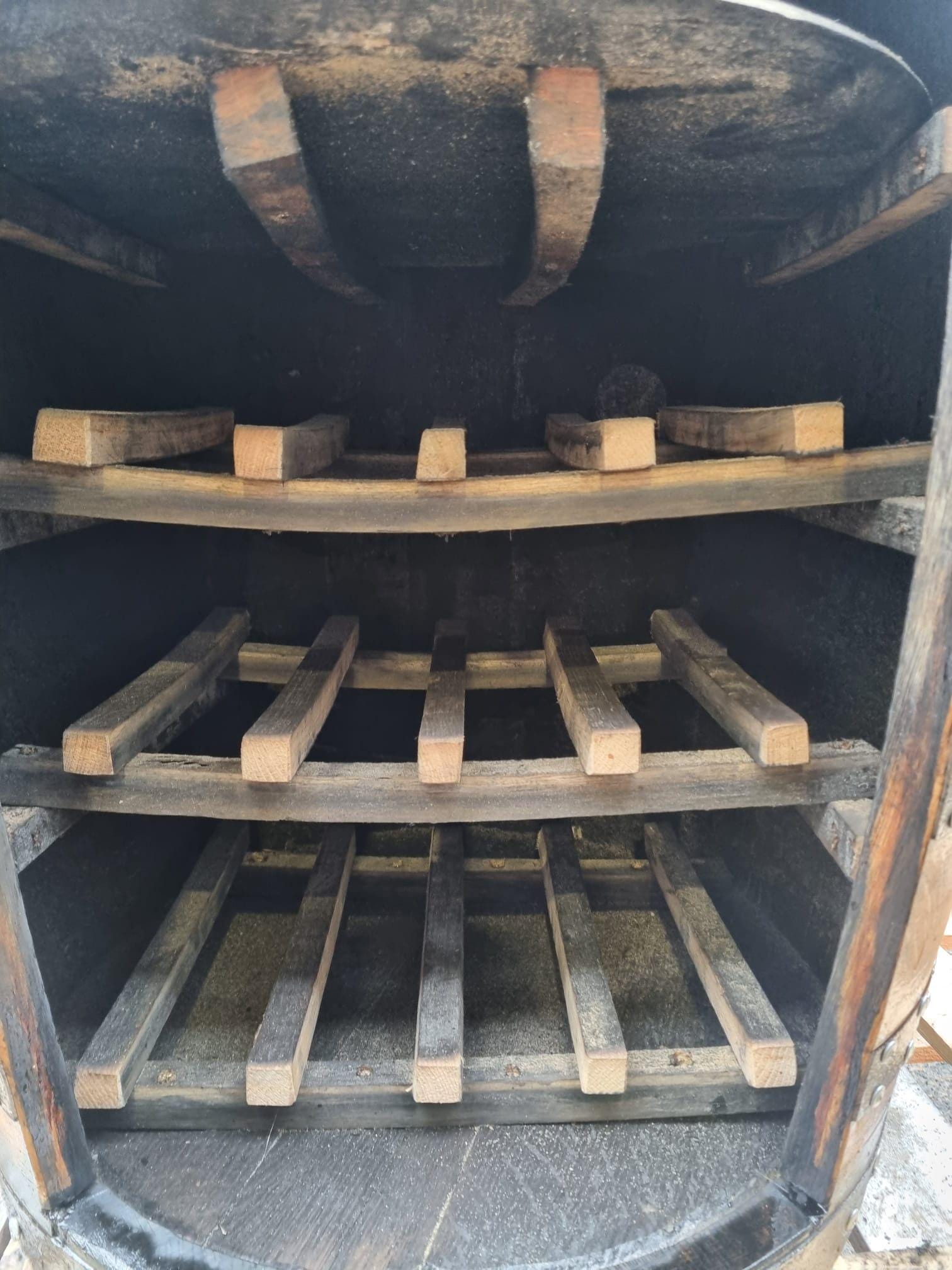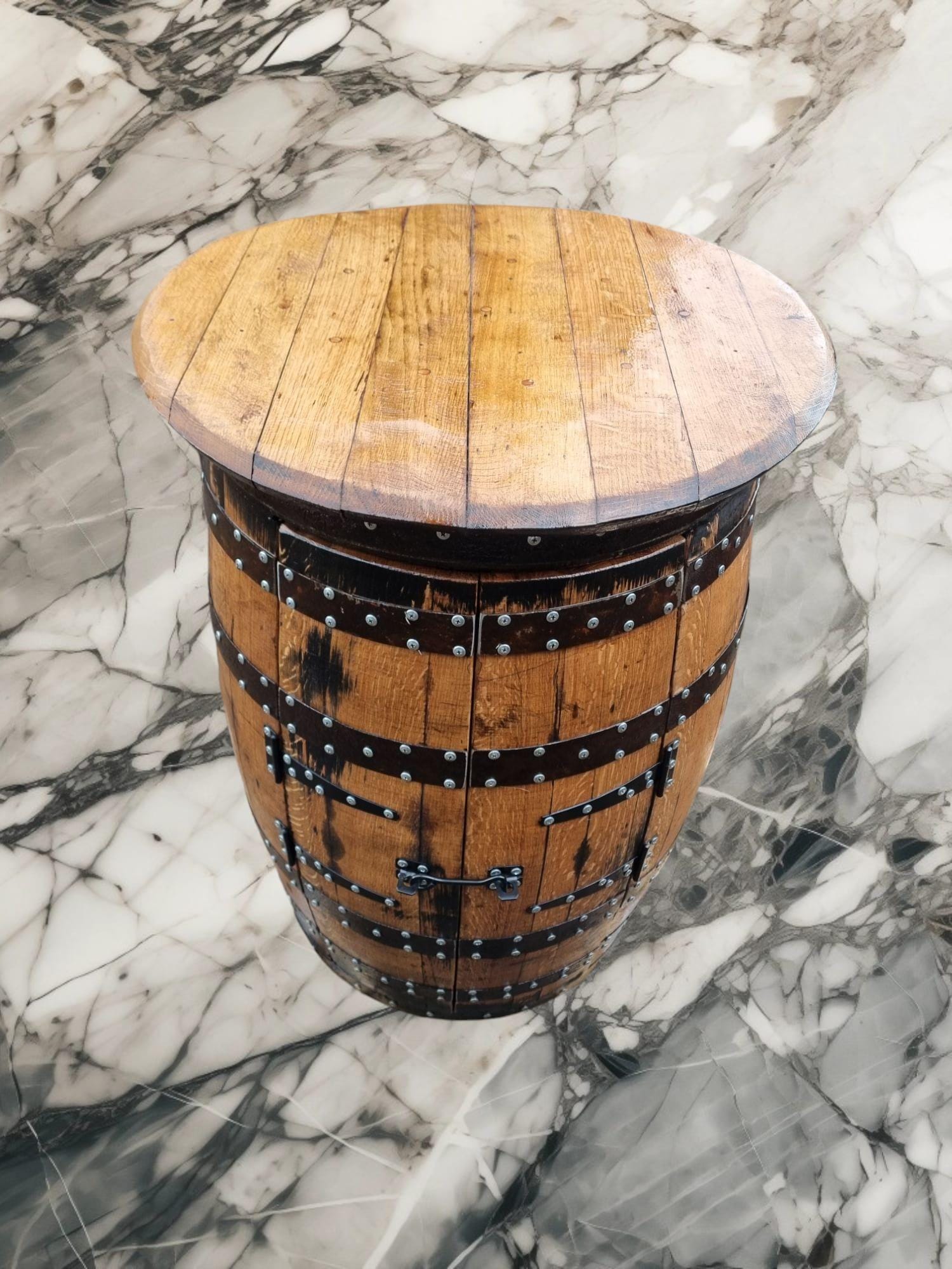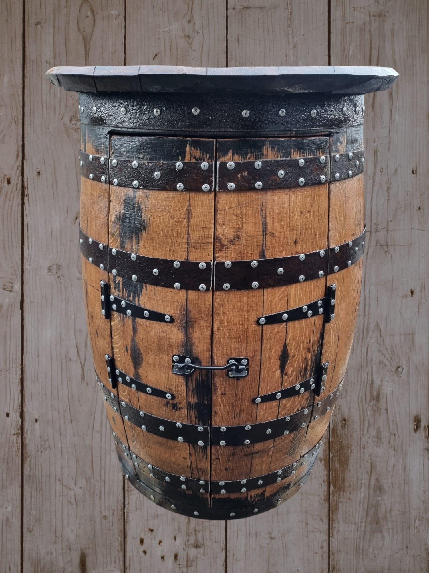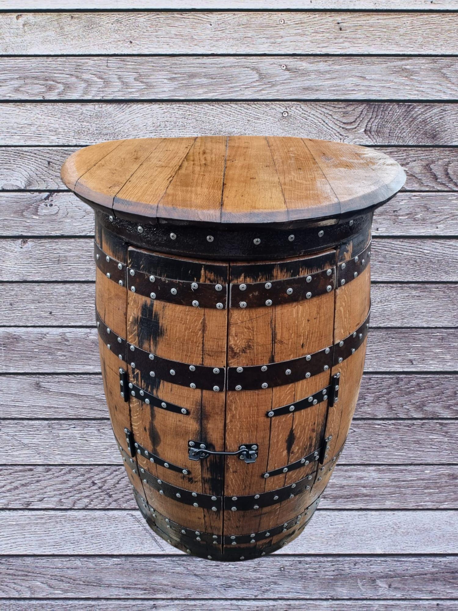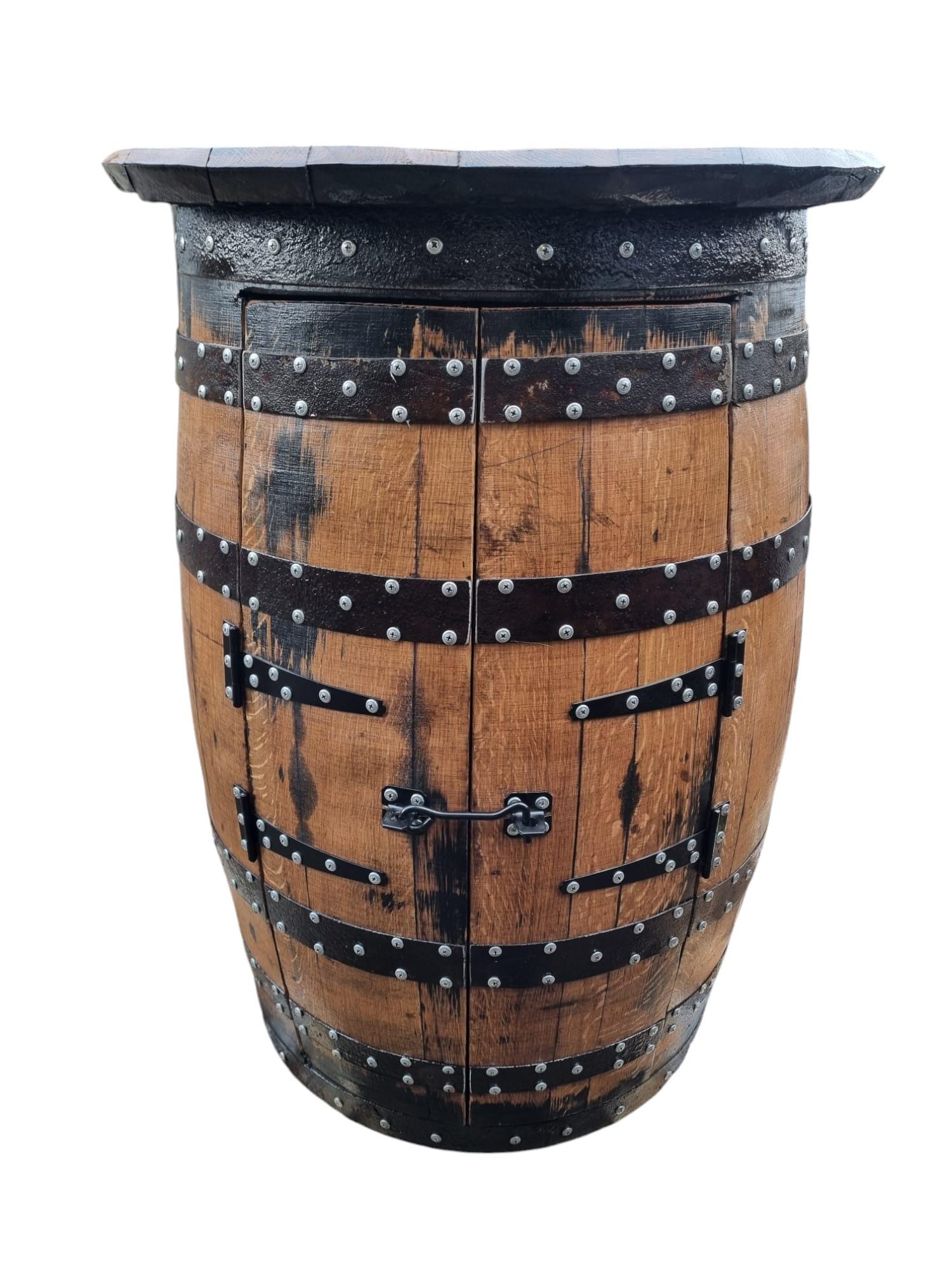 The rustic solid oak Whisky barrel wine rack | drinks cabinet | patio table is hand made from solid oak whisky barrels that have been used in some of the finest distilleries that Scotland has to offer. They are fitted with double doors, the wine rack inside is made from the staves of a whisky barrels and can hold up to 12 bottles. The shelf above adds even more storage for your glasses or more bottles. The cabinet is fully restored then varnished to make it ideal for indoor or outdoor use. They would look great in any home bar, conservatory, on the patio or even a pub or restaurant.