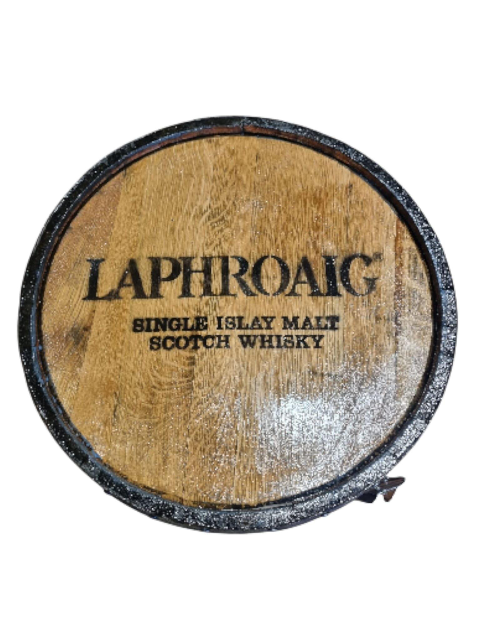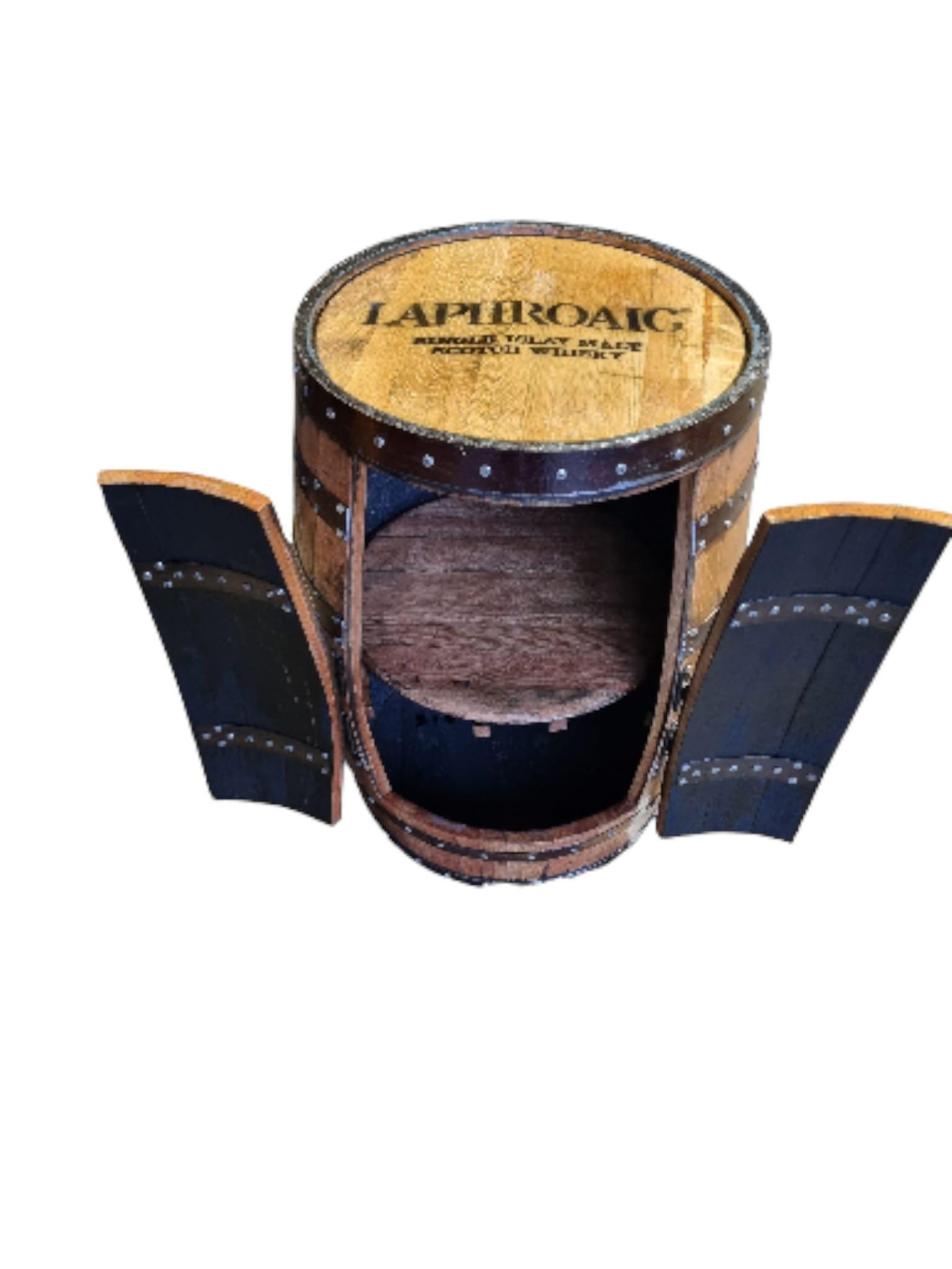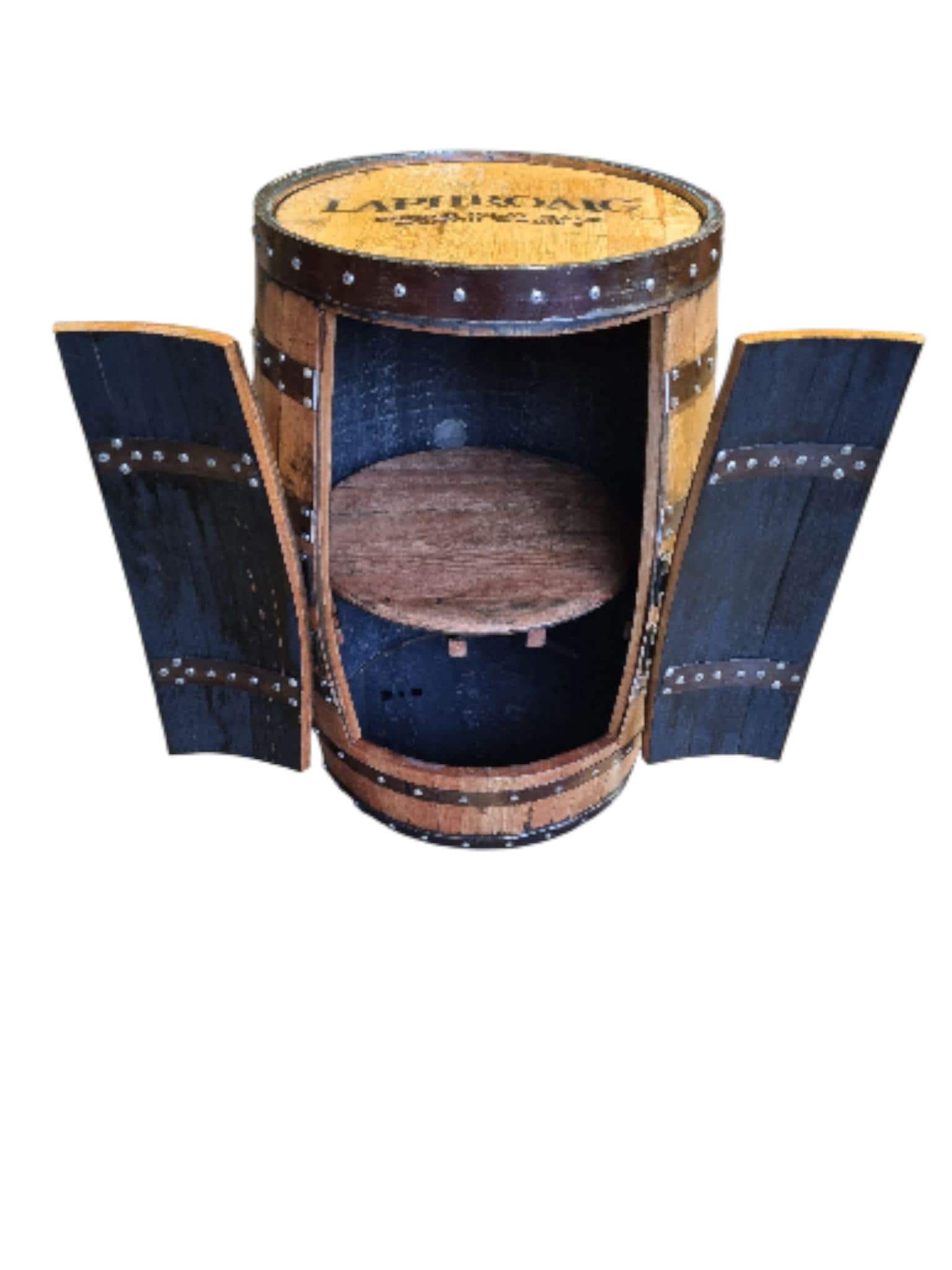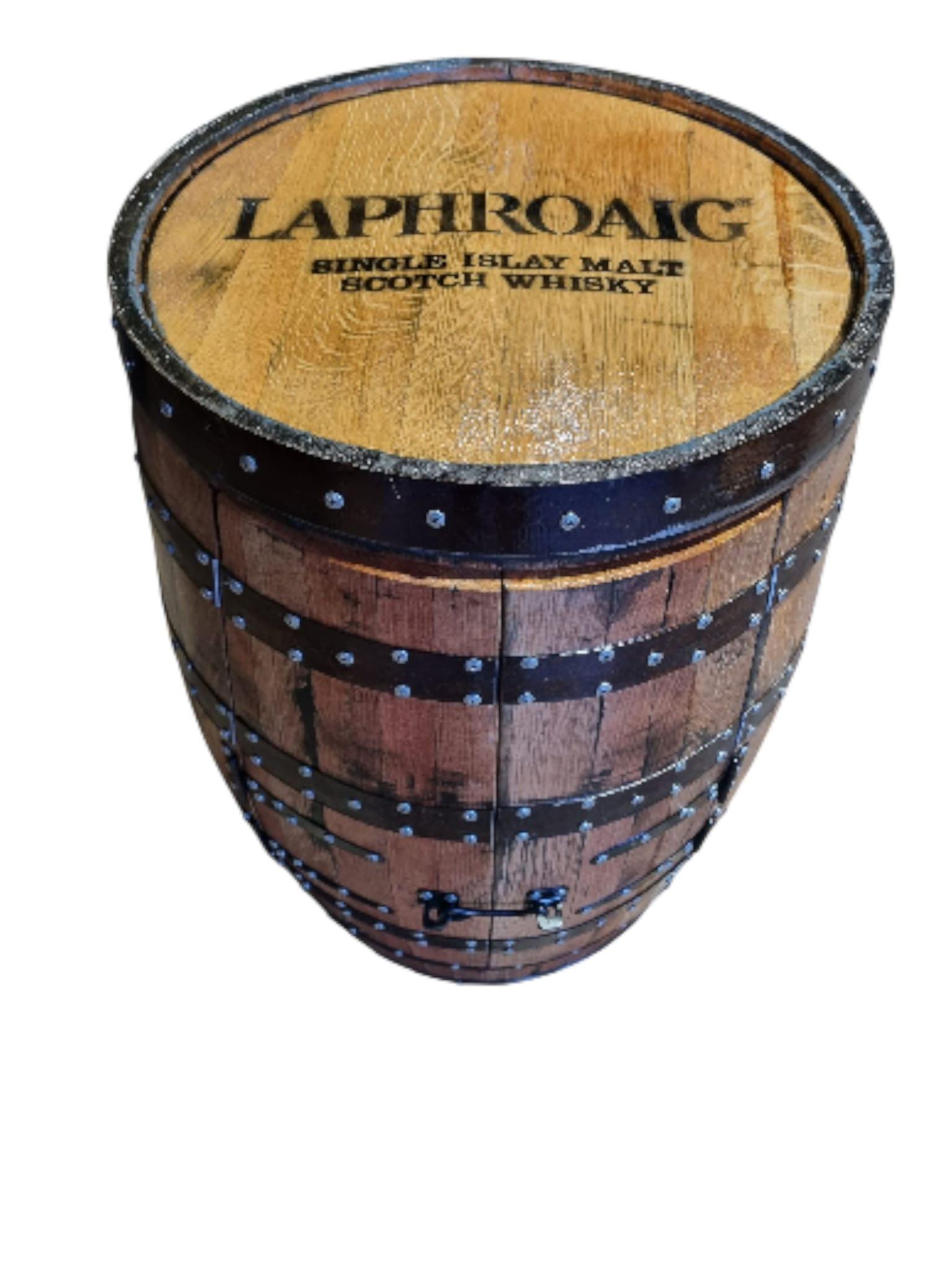 LAPHROAIG SCOTCH WHISKY Branded - Rustic Bourbon Barrel Cask Handcrafted Drinks Cabinet / Home Bar / Man Cave