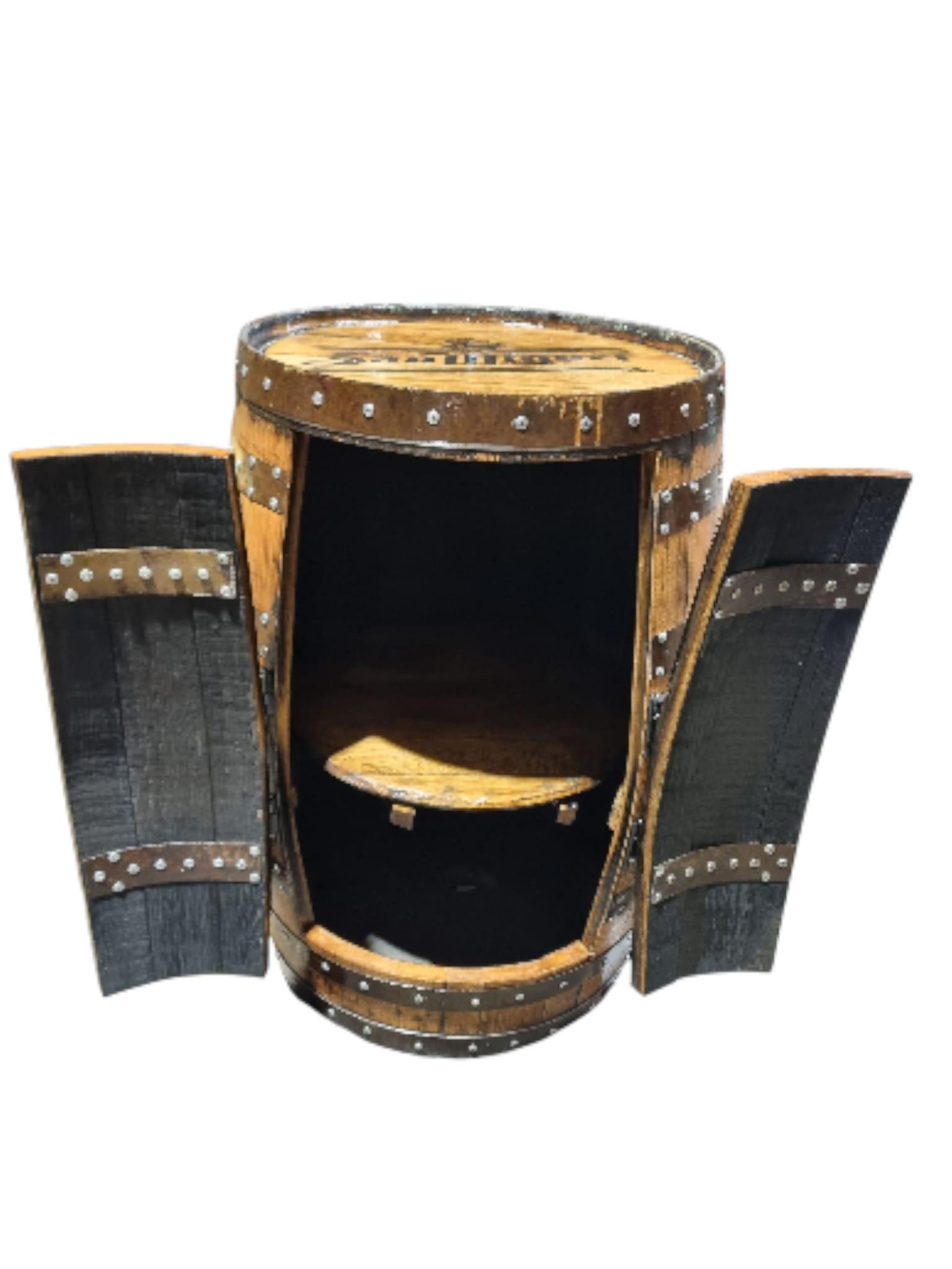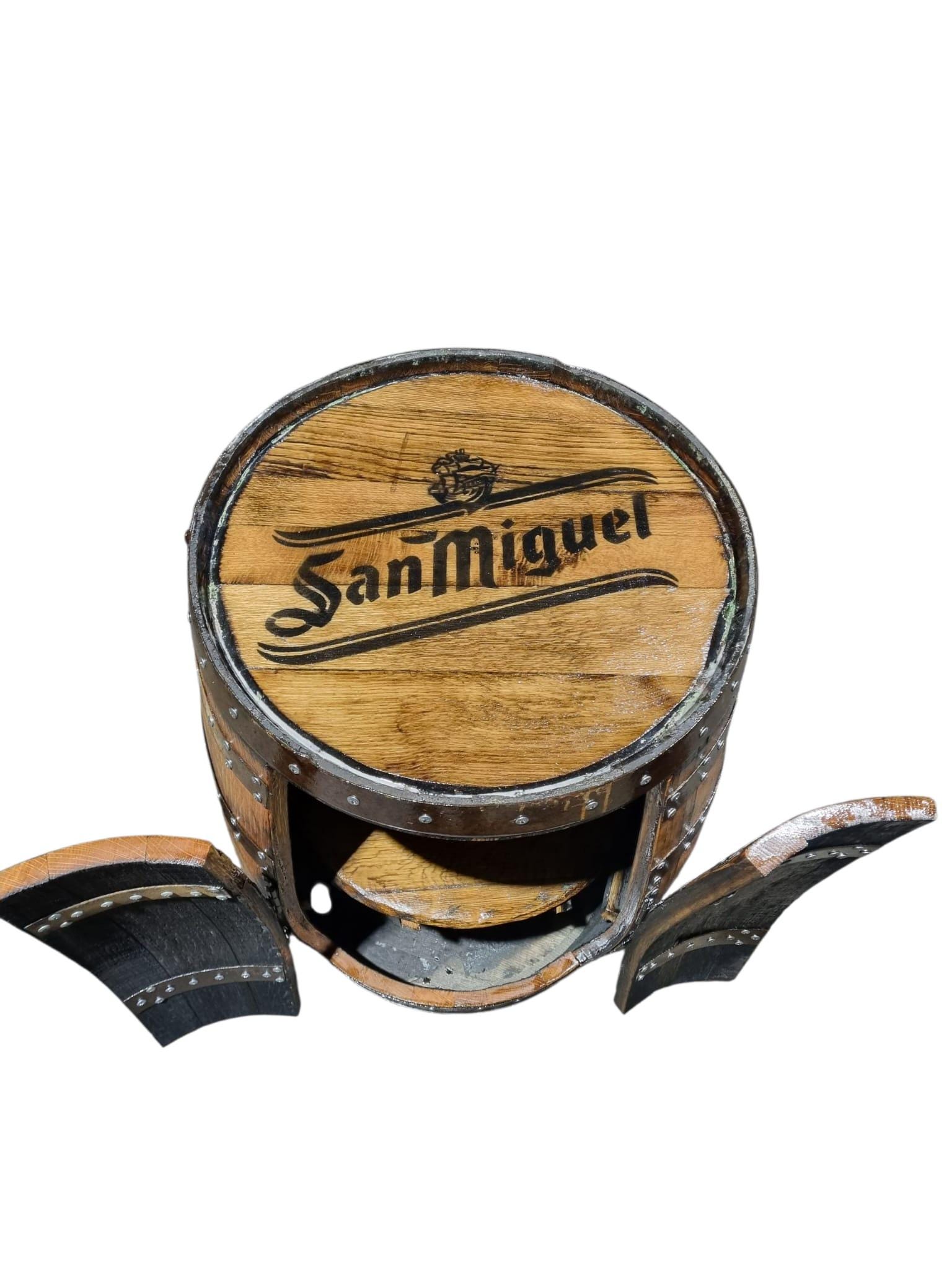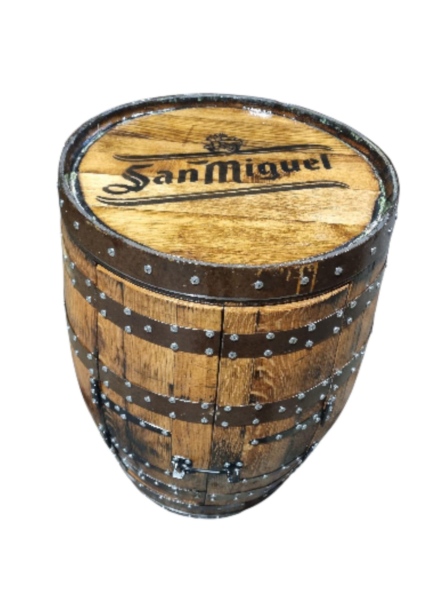 SAN MIGUEL LAGER Branded - Rustic Bourbon Barrel Cask Handcrafted Drinks Cabinet / Home Bar / Man Cave