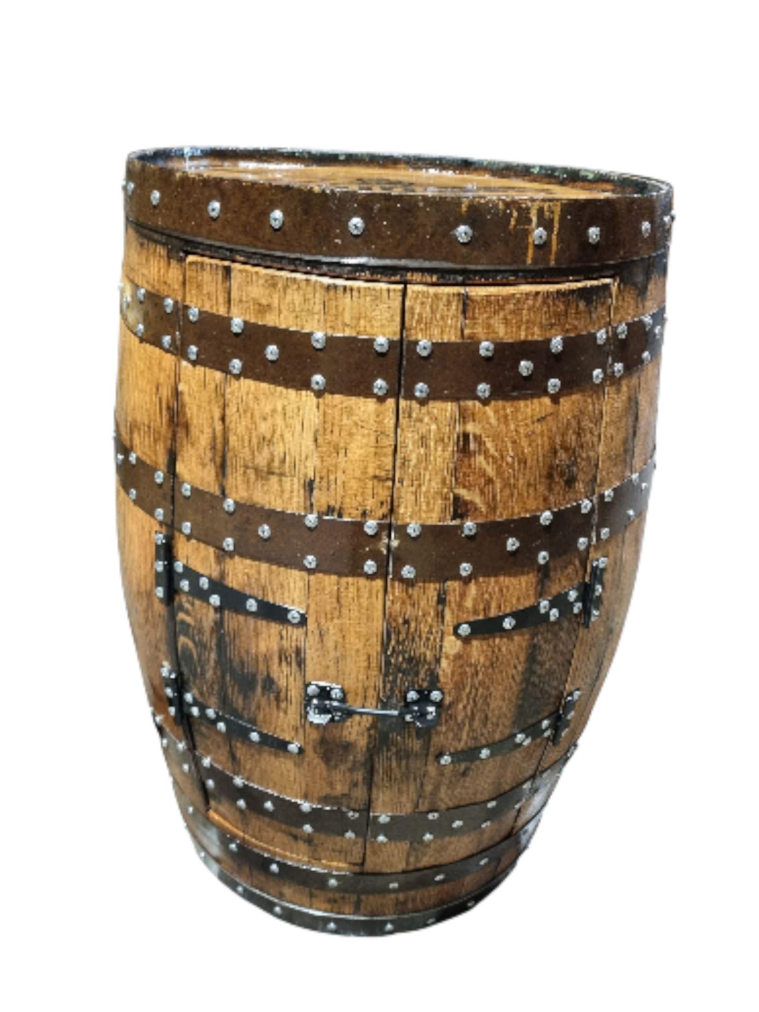 The recycled solid oak whisky barrel drinks cabinet is handmade from recycled Scottish whisky casks that have been sourced from the finest and oldest distilleries in Scotland.