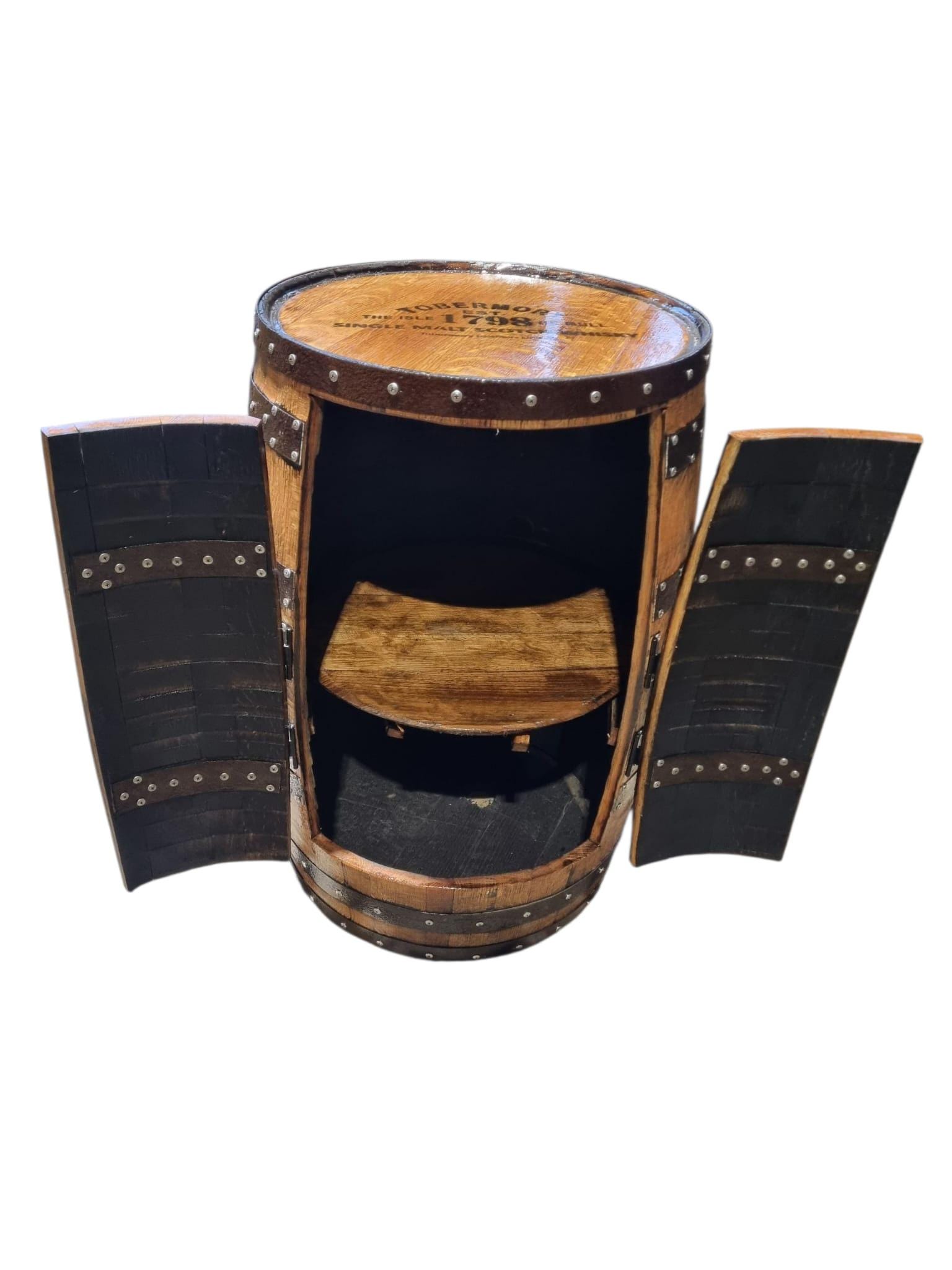 TOBERMORY SCOTCH WHISKY Branded - Rustic Bourbon Barrel Cask Handcrafted Drinks Cabinet / Home Bar / Man Cave