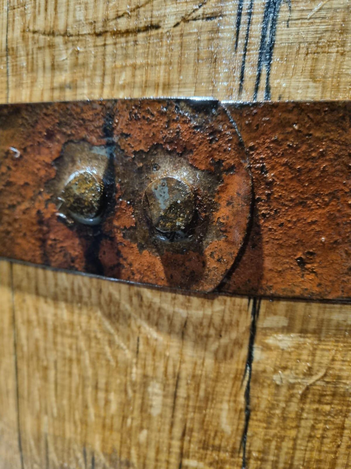 The barrels have been stripped back, repaired if required, plugged, sanded smooth, then several coats of oil are applied with a high quality grade of oil suitable for barrels, the metal rings are also coated with tough anti rust paint which allows the age and character of the metal to still be seen.