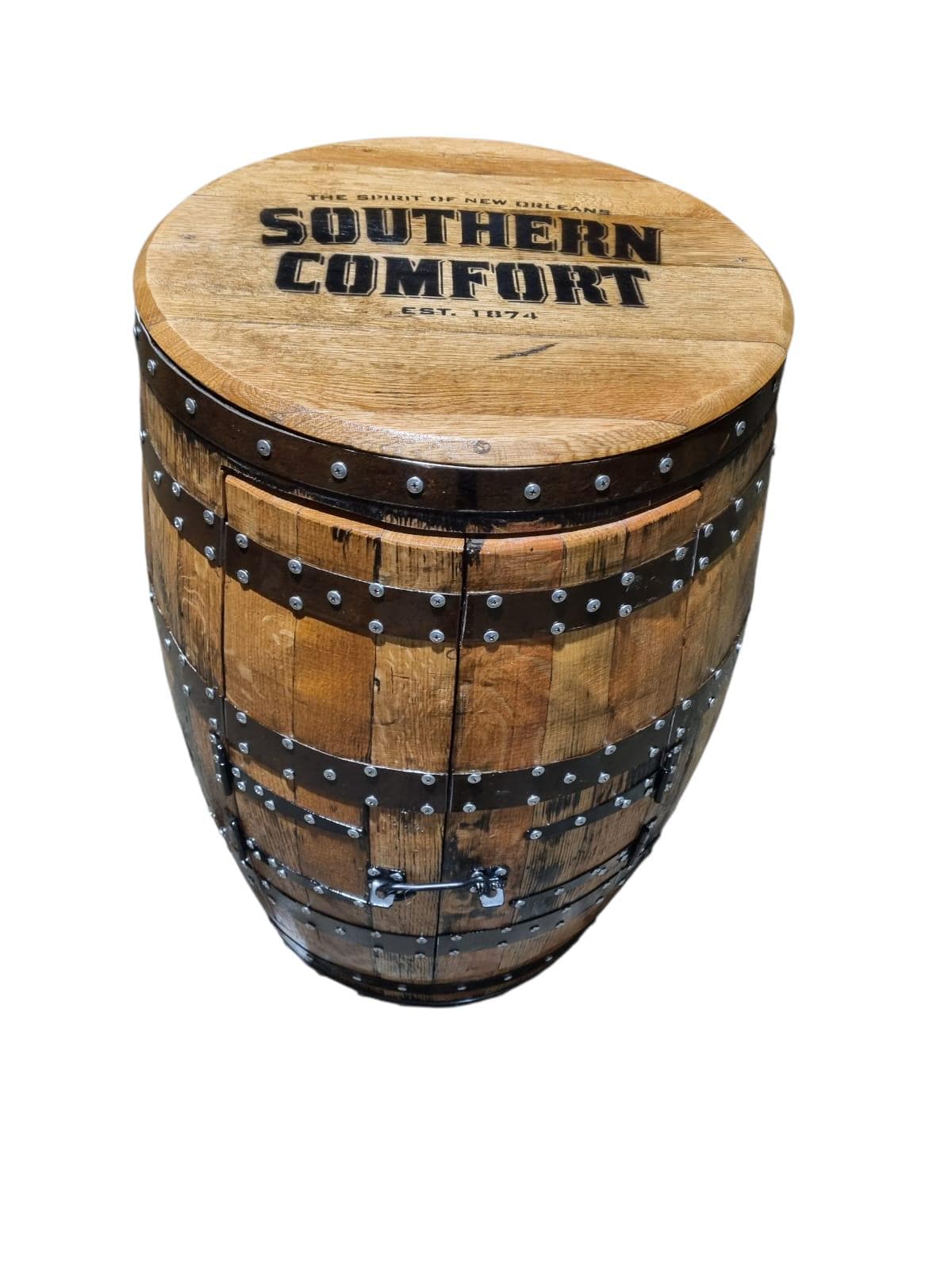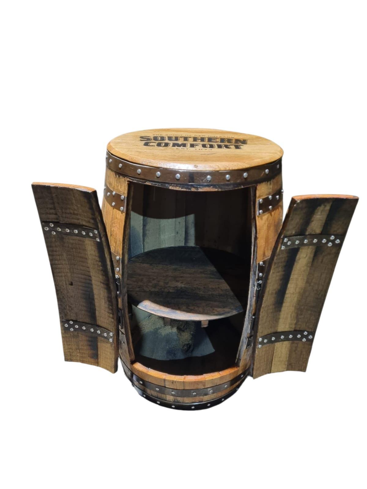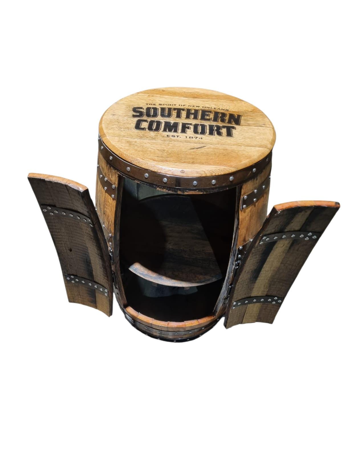 SOUTHERN COMFORT Branded - Rustic Bourbon Barrel Cask Handcrafted Drinks Cabinet / Home Bar / Man Cave
